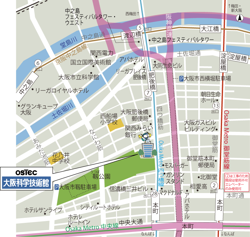 南西へ徒歩約10分 - 京阪中之島線渡辺橋駅下車5 号出口 南へ徒歩約12分