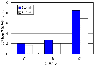 図 4-28 80%吸蔵所要時間(熱媒温度40℃)