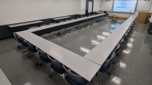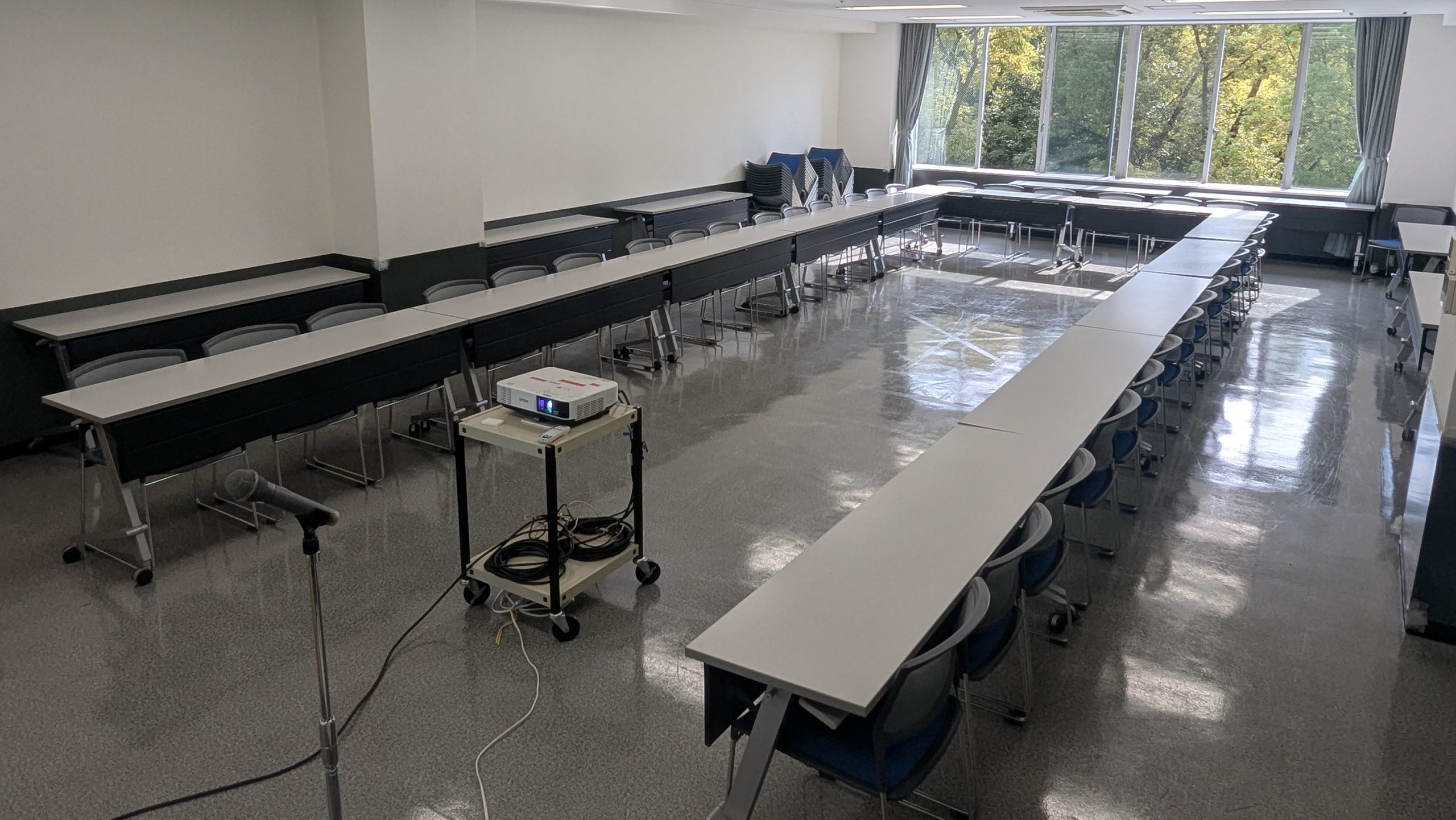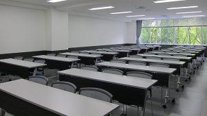 定員60名(試験形式40名)の会場です。コンパクトに使いやすいので、セミナー、研修会、オンライン会議、試験会場など様々な用途でご利用いただいております。