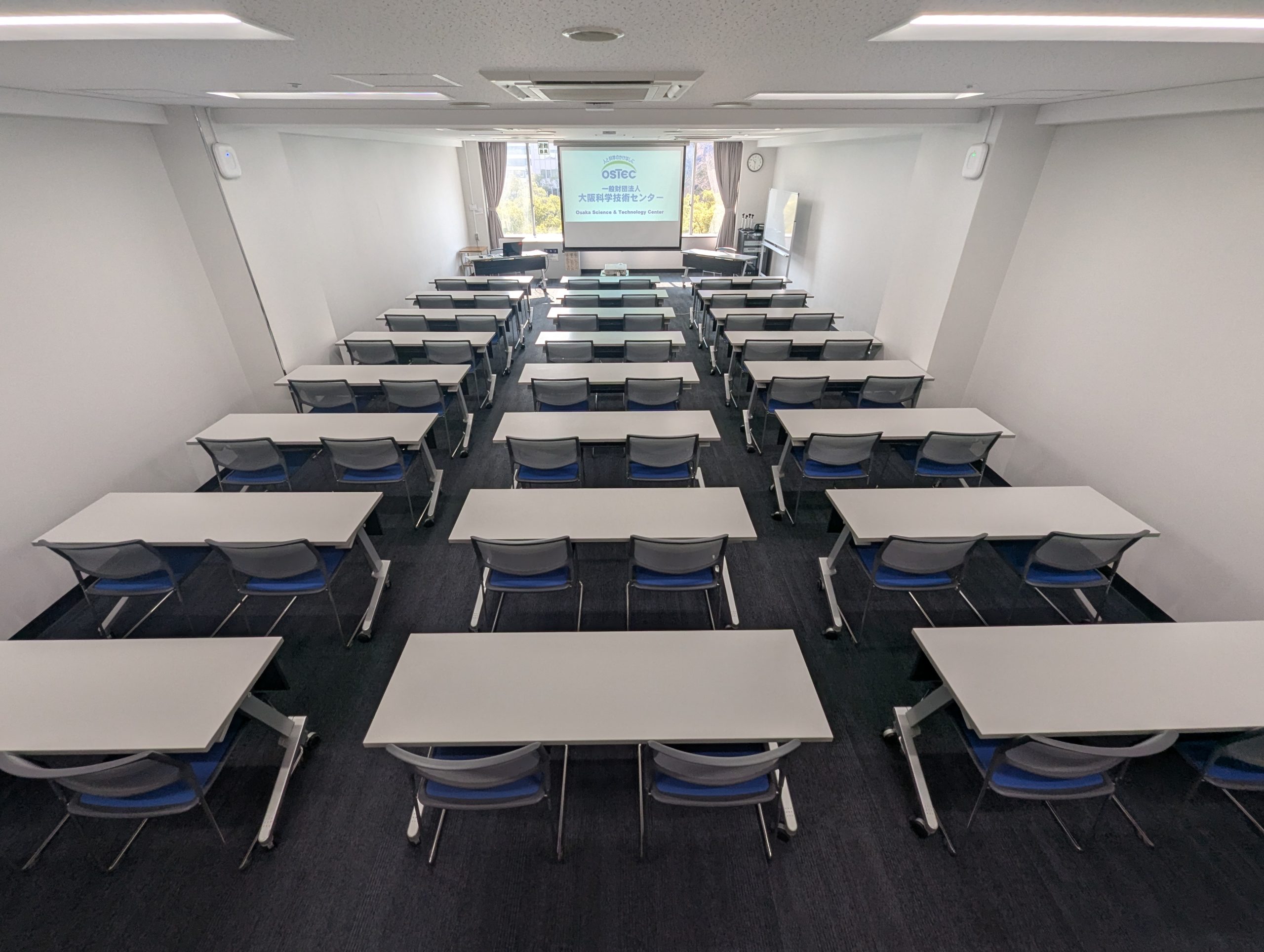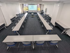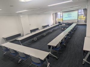 定員60名(試験形式30名)の会場です。コンパクトに使いやすいので、セミナー、研修会、オンライン会議、試験会場など様々な用途でご利用いただいております。