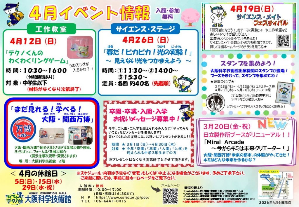体験しながら学べる科学技術館 てくてくテクノ館 大阪科学技術館