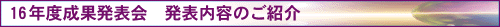 本研究事業で開発した研究成果について、ポスターおよび試作品の展示を行い、研究者から直接説明する。 |